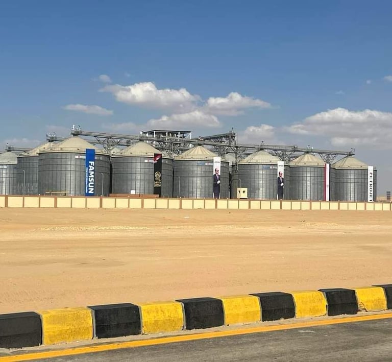 Professional erection and dismantling of grain silos. The grain storage silos complex project within the egypt future sustainable development project in dabaa axis, Egypt.